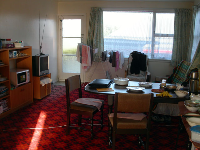 チャーチに戻ってきて、やっぱり不便なのでフラットを探すことにする。前にも見たことのあるような張り紙の先に電話してフラットを見に行き、めんどくさいのであっさり決定。3ベッドルーム、オーナーはKiwiだが一緒には住んでいなくて、現在はコリアンのカップルと日本人の女の子が住んでいる。コリアンのカップルはフラットに入ったのが先週で来週には出ていってしまうらしい。張り紙はどこの掲示板にも常にあったような気がするし、オーナーは短期でも全然かまわないようだったので、けっこう入れ替わりの激しいフラットなのかもしれない。前のフラットよりちょっとだけ安くなったが、Cityから離れてThe Caveとの距離は変わらないものの、Castle Hillからは遠くなってしまった。